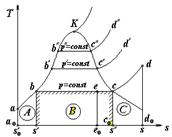 Кривая c-d выражает собой процесс перегрева пара при p = const. Точка d соответствует температуре перегретого пара и энтропии s. В этой области перегретого пара количество теплоты будет равно