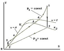 Рис. 12.5. Ts – диаграмма цикла Ренкина