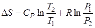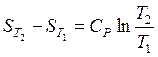Поскольку энтропия является функцией состояния, то изменение энтропии можно определить, если известно значение параметров начального и конечного состояний системы. Пусть начальное состояние S1 характеризуется параметрами T1 и P1, а состояние S2 - параметрами T2 и P2 (если за независимые переменные выбраны T и P).Так как изменение энтропии не зависит от пути перехода, то удобнее рассмотреть переход из состояния S1 в состояние S2, сначала изменяя температуру от T1 до T2 (при