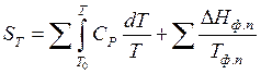 где первая сумма выражает изменение энтропии в процессе нагревания, а вторая изменение энтальпии при фазовых и модификационных переходах.