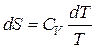 · Изохорный процесс ( Расчет энтропии в изохорном процессе проводят аналогично расчету для изобарного процесса, только вместо изобарной теплоемкости используется изохорная теплоемкость CV: