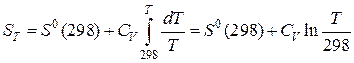 2) если теплоемкость зависит от температуры и эта зависимость выражается степенным рядом Согласно постулату Планка энтропия чистых твердых веществ, образующих идеальные кристаллы, при абсолютном нуле, равна нулю. Учитывая этот постулат, можно определить абсолютное значение энтропии химически чистых веществ в любом агрегатном состоянии и при любых температурах по уравнению: