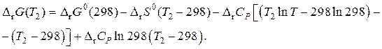 Пример 3. Вычислить энергию Гиббса предложенным способом для реакции: