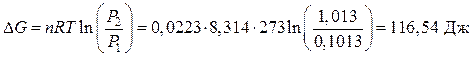 Т.к. процесс протекает при Т= const, то второе слагаемое будет равно нулю. Расчет проводим по формуле dG = VdP. Из уравнения Менделеева-Клапейрона выразим V: