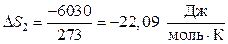 2-й процесс. Кристаллизация воды при 00С (273 К). В условиях задачи дана удельная теплота плавления (DН плавл), т.е. теплота фазового перехода 1 г воды из твердого состояния в жидкое. Т.к. то где DН2 – теплота кристаллизации 1 моля воды, DН плавл. уд – удельная теплота плавления, приведенная в задаче, М – молярная масса воды. Тогда Энтропия фазового перехода рассчитывается по формуле (47):