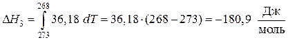 3-й процесс. Обратимое охлаждение льда от 273 до 268 К. Расчет энтальпии и энтропии проводим аналогично первому процессу.
