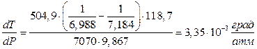 В соответствии с условием здесь Тф.п. – температура плавления под давлением 1 атм.; DV – разность объемов (удельных) жидкого и твердого олова; DНф.п.уд. – удельная теплота плавления олова. Для нашего случая Тф.п. = 231,9+273 = 504,9К