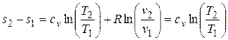 Поскольку внутренняя энергия идеального газа является функцией только его температуры, то формула (4.2) справедлива для любого термодинамического процесса идеального газа. Изменение энтропии в изохорном процессе определяется из формулы (3.4) при v 1 = v 2, поскольку