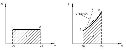 Работа расширения в этом процессе равна нулю, так как dv = 0. Количество теплоты, подведенной к рабочему телу в процессе 12