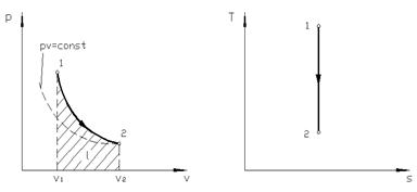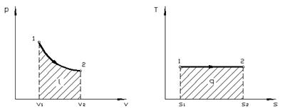 В T,s - диаграмме изобара тоже является экспонентой, как и изохора, но поскольку cp > cv, она положе. Изотермический процесс. При изотермическом процессе температура постоянна, следовательно,
