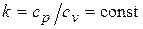 Это и есть уравнение адиабаты идеального газа при постоянном отношении теплоемкостей (k = const). Величина