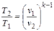 Записав из уравнения Клапейрона, написанного для состояний 1 и 2, отношение температуры через отношение давлений и заменив в нем отношение давлений через отношение объемов из уравнения (4.12) или наоборот, получим уравнение адиабатного процесса в форме, выражающей зависимость температуры от объема или давления: