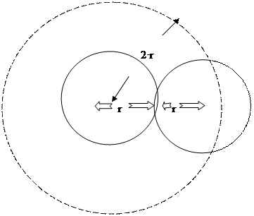 Рис. 3.1. Объем пространства, недоступный центрам двух молекул в процессе их соударения (штрихованная линия)