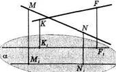 Вопросы и задания 1. Как получить параллельную проекцию: а) точки; б) фигуры? 2. Какая фигура является параллельной проекцией: а) отрезка; б) прямой? 3. Какие свойства фигур сохраняются при параллельном проектировании? 4. Приведите реальные примеры проектирования. Задачи 62. Отрезок а — проекция отрезка Ъ. Всегда ли отрезок а короче Ь? 63. Может ли ромб быть проекцией квадрата? А трапеции? 64. Существует ли неплоская фигура, проекция которой — отрезок? 65. Треугольник AJZfi^ — проекция треугольника ABC. Постройте 66. Треугольник А1В1С1 — проекция треугольника ABC. Постройте 67. Может ли сечением куба быть треугольник, правильный треуголь 68. Точка К — середина ребра AD тетраэдра ABCD. Постройте сече В