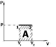 изобарическом процессе. На графике изобарического процесса в координатах (P,V) работа, совершаемая газом, численно равна площади прямоугольника, построенного под изобарой (рис. 1.4).