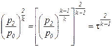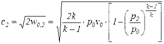 В обратимом адиабатном процессе истечения (0-2) скорость в выходном сечении сопла может быть определена из соотношения