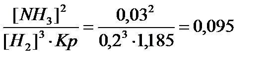 Пример расчета. При определенной температуре в системе N2 + 3H2 Û 2NH3 установилось равновесие при следующих концентрациях: N2 - 0,1моль/л
