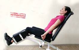 1.Раздвиньте рычаги тренажера и сядьте на него, заходя спереди. 2.Поместите ноги между подушками. 3.Потяните носки на себя. 4.Колени должны быть слегка согнуты (не отрывайте голени от нижних подушек). 5.Из исходного положения (ноги вместе), разводите их в стороны, насколько это возможно. 6.Сводите ноги в исходное положение. 7.Не сводите внутрь колени. 8.Не сутультесь и не прогибайте поясницу. ВАРИАЦИИ: посетительницы невысокого роста могут садиться ближе к краю сидения. ВНИМАНИЕ: Работая на тренажере, ни в коем случае не сводите внутрь колени и не разводите в стороны стопы (ваши колени и пальцы ног должны быть естественным образом обращены вверх). Следует понимать, что при сведении колен внутрь, бедра тоже вращаются внутрь, а при разведении в стороны стоп, голени вращаются наружу. Соответственно, при одновременном вращении бедер внутрь, а голеней наружу, связочно-суставной аппарат коленных суставов испытывает нагрузку подобно "скручиваемому полотенцу". Это может привести к серьезным последствиям: травмам его менисков и связок. Удерживая таз по центру сидения, синхронно сводите и разводите ноги. Из-за того, что у большинства из нас одна нога сильнее другой, на тренажере мы часто сводим и разводим их не синхронно (более сильная нога двигается быстрее). Поэтому, чтобы компенсировать данную несинхронность и одновременно сводить ноги в центр, мы неосознанно сдвигаем таз в сторону. В результате мышцы на обеих ногах нагружаются неодинаково, а это еще больше нарушает баланс их развития и тем самым создает условия хронической перегрузки суставов и позвоночника. Не допускайте этих ошибок: крепко держась за рукоятки, стабилизируйте положение таза и внимательно контролируйте синхронность движения ног.