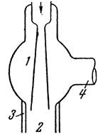 1 – Сопло; 2 – Холодильник; 3 – Водяная рубашка; 4 – Патрубок Рисунок 3 – Трубка сопла, расширяющаяся в конус