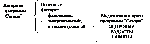 Рис.2 Медитативная диаграмма “Мандала” - инструмент для медитации Примечание. Если вы заказали у нас пластинку «Программа Сатори», то можете использовать диаграмму, размещенную на лицевой стороне пластинки. В этом случае изготавливать самим описанное выше пособие вам не нужно. Алгоритм программы «Сатори». Медитативная фраза программы «Сатори». А теперь приготовьте лист белой бумаги размером с тетрадный лист и сделайте пространственный конспект теоретической части урока 1 — алгоритм программы «Сатори»: