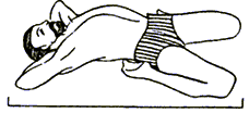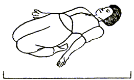 1. Соедините колени и носки вместе, а пятки разведите, чтобы в районе ступней образовалась лунка. 2. Сядьте ягодицами на пятки, прямо в лунку. 3. Поверните руки ладонями вниз и положите ладони на колени. 4. Держите голову, шею, спину на одной прямой линии и смотрите вперед. 5. Дышите спокойно, следите за тем, чтобы тело не наклонялось вперед. В асане не должно ощущаться никакого напряжения, это поза отдыха и размышлений. В основном эта асана предназначена для медитаций и дыхательных упражнений. Продолжительность — от I мин. в начале занятий и до 20 мин. после освоения этого упражнения. Начинающему бывает трудно сидеть в ВАДЖРАСАНЕ, но с практикой неудобство исчезает. Ожидаемый эффект. Поза усиливает циркуляцию крови в области таза и обеспечивает некоторое терапевтическое воздействие на многие внутренние органы, развивает эластичность коленных суставов и голеностопных связок, активизирует пищеварительные процессы. Первопричиной многих заболеваний (например, головные боли, заболевания нервной системы и др.) является неправильное пищеварение. Активизируя пищеварительные процессы, вы избавляетесь от ряда заболеваний. Особые замечания. Поза ВАДЖРАСАНА является базовой как в программе «Сатори», так и последующей программе «Ультра-Рапид», поэтому мы настоятельно рекомендуем вам уделить ей должное внимание, чтобы в дальнейшем пребывание в этой позе в течение 20 мин. не вызывало у вас никакого дискомфорта. После того как вы уверенно почувствуете себя в этой позе, вам следует использовать ее для выполнения дыхательных упражнений, медитации на мандале; произнесения медитативной фразы программы «Сатори», которую, надеемся, вы уже запомнили. Как только вам покажется, что пора заканчивать выполнение ВАДЖРАСАНЫ, то прежде чем это сделать, произнесите медитативную фразу программы «Сатори» три раза вслух, громко, отчетливо: ЗДОРОВЬЕ! (Если по какой-либо причине вам неудобно это сделать вслух, произнесите медитативную фразу про себя, польза будет тоже, но эффективность снижается.) Поза ВАДЖРАСАНА — это исходное положение для выполнения второй асаны в программе «Сатори» — СУПТА-ВАДЖРАСАНЫ. Почувствовав себя уверенно в позе ВАДЖРАСАНА, приступайте к освоению следующего упражнения. СУПТА-ВАДЖРАСАНА. Твердая поза лежа (поза «Алмаз»)(рис. 4,5,6). Ваджра на санскрите означает «твердый» и одновременно «алмаз». По мнению йогов, эта асана придает силу и энергию, а в результате сильного вытягивания тела сообщает организму и чистоту алмаза. Исходное положение. Исходным положением, как мы отмечали выше, служит поза ВАДЖРАСАНА. Сядьте в ВАДЖРАСАНУ, сделайте два свободных вдоха и выдоха. Техника исполнения. Вариант № 1 (см.рис.4). 1. Раздвиньте стопы и разверните их таким образом, чтобы подошвы были обращены к потолку. Пальцы ног и стопы должны находиться на одной линии. Вытягивайте стопы и пальцы ног назад.