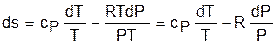 Для идеального газа изменение энтальпии определяется как dh=cpdT, а удельный объем v = RT/P. Подставив данные выражения изменения энтальпии и удельного объема в уравнение (3.58), получим уравнение для изменения энтропии идеального газа: