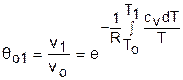 Для адиабатного процесса 12 (рис.4.16) с параметрами в начальной точке Р1, T1 и v1 и в конечной точке Р2, T2 и v2 относительные объемы и давления будут рассчитываться в соответствии с уравнениями (4.35) и (4.36) по формулам