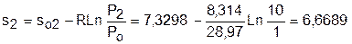 Изменение энтропии происходит только за счет изменения температуры, т.к. процесс 23 – изобарный. Для определения абсолютных значений энтропий необходимо задаться величиной Ро. Приняв Ро=1 бар, рассчитаем s1, s2 и s3: