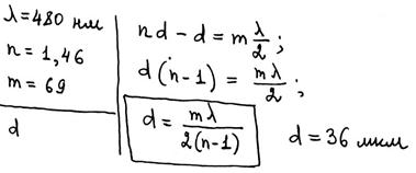 34. Тонкая пленка с показателем преломления n = 1,5 освещается светом с длиной волны