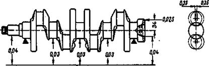 Рис. 18. Допустимые биения основных поверхностей коленчатого вала
