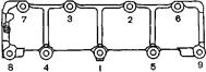 Рис. 38. Порядок затягивания болтов головки цилиндров