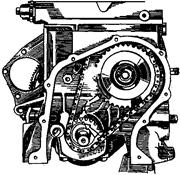 Рис. 39. Проверка совпадения установочной метки на звездочке коленчатого вала сметкой на блоке цилиндров