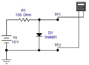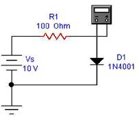 Для исследования напряжения и тока диода при прямом и обратном смещении p-n перехода достаточно иметь универсальный прибор - мультиметр. С помощью этого прибора можно снять вольтамперную характеристику (ВАХ) диода или любого другого нелинейного двухполюсника. Проще всего в этом случае измерять напряжение на диоде в схеме, показанной на рисунке 1.1, подсоединяя к диоду через резистор источники напряжения различной величины.