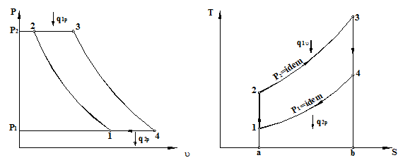 б) цикл с подводом теплоты при P=idem (цикл Брайтона) (рис.6).