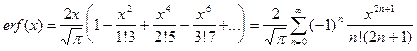 Через эту функцию выражаются решения многих задач в теории теплопроводности, да и в других областях физики она играет важную роль. Из определения (3) видно, что erf(0) = 0, а erf(¥) = 1, т.е. erf(x) - это монотонно возрастающая функция, вид которой изображен на рисунке. Функция erf(x) табулирована, и ее значения приводятся в различных справочниках. В библиотеках некоторых языков программирования имеются готовые подпрограммы для вычисления функции erf(x). Если готовой подпрограммы нет, функцию erf(x) можно вычислить с помощью степенного ряда. "Стандартное" разложение этой функции в степенной ряд, которое обычно приводится в математических справочниках, имеет вид: