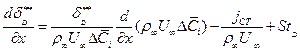 Аналогично предшествующему выводу получается соотношение диффузии в пограничном слое. Для этого используются уравнения диффузии i – ого компонента (7.29) и уравнение неразрывности (7.11), умноженное на