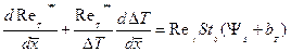 где ΔТ = Тст – Т*∞, При известных ρ∞(х), U∞(х), ΔТ(х), qст(х) Uст(х) уравнение(7.68) решается с граничным условием х = 0, δт** = δто**. Решение проводится численно, например, методом Рунге-Кутта. В результате решения получаем распределение δт** = δто**(х). Введя число Стантона