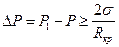 На криволинейной поверхности раздела фаз капля находится под действием сил поверхностного натяжения. Давление Pж определяется формулой Лапласа: