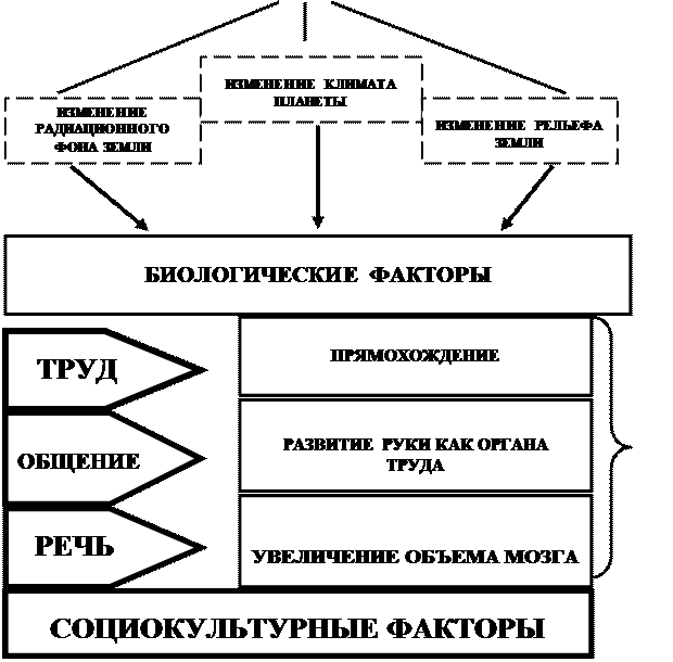 2. Определите сущность генезиса (происхождения) сознания, предпосылок его возникновения. 2.1.Запомните, первой предпосылкой возникновения сознания является отражение. СОЗНАНИЕ – ЭТО ВЫСШАЯ ФОРМА ОТРАЖЕНИЯ. Отражение, являясь всеобщим свойством материи, есть ключ к решениюпроблемы возникновения сознания и раскрытия его сущности и содержания, форм проявления и функций. Отражение после завершения взаимодействия объектов продолжает существовать в отражающем объекте как след, отпечаток отражаемого явления. Это отраженное многообразие структур и свойств взаимодействующих явлений получило название информации. Информационное отражение, связанное со способностью материальных объектов использовать следы взаимодействия для активной ориентации в действительности, явилось определяющим этапом эволюции материального мира, обусловившим в условиях необходимости приспособления живых организмов к постоянно изменяющейся внешней среде формирование тончайшего нервного аппарата - мозга. Мозг – это орган сознания, а сознание – функция мозга. 2.2. Охарактеризуйте сущность генезиса сознания как в исторической ретроспективе (филогенез), так и в индивидуальном развитии человека (онтогенез). 2.2.1. Проанализируйте филогенетические факторы, обусловившие возникновение и развитие сознания человека.