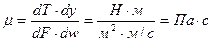 В такой форме уравнение выражает закон внутреннего трения Ньютона, согласно которому напряжение внутреннего трения, возникающее между слоями жидкости при ее течении, прямо пропорционально градиенту скорости. Знак минус в правой части уравнения указывает на то, что касательное напряжение тормозит слой, движущийся с относительно большой скоростью. Коэффициент пропорциональности Размерность динамического коэффициента вязкости в СИ может быть выражена как
