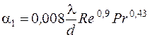 где D tБ – большая разность температур теплоносителей, °С; D tМ – меньшая разность температур теплоносителей, °С. Коэффициент теплопередачи a1 при развитом турбулентном течении в прямой трубе (Re >10000) равен