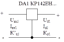 Соңғы жылдарда микросхема - кернеудің интегралдық стабилизаторлары аса кеңінен таралды. Оның негізінде қорек көзі қосымша бұйымдардың аз санымен, төмен бағасымен және жақсы техникалық сипаттамаларымен ерекшеленеді. Олар 142, К142 және КР142 сериялы микросхемалар. Серия құрамына оң өткізгішке қосылған реттеуші элементі бар және тұрақты шығыстық кернеумен берілген стабилизаторлар кіреді. Олардың кейбіреуінің параметрлері 1-кестеде келтірілген, аса толық мағлұматты [9, 10] әдебиеттерінен алуға болады. Жобаланатын қорек көзінің бірінші каналында қолданылатын микросхемадағы стабилизаторды есептеу схемасы 2-суретте келтірілген. Есептеуге арнлағна бастапқы берілгендер мыналар: стабилизатор шығысындағы U d1 кернеу, жүктеменің I d1 тогы, кернеуді пульсациялау коэффициенті К п1.