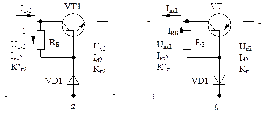 3 сурет – Транзистордағы токты күшейткішпен стабилизаторды есептеу схемасы: а – оң полярляғы үшін Ud2; б – теріс полярляғы үшін