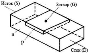 Рис.1 Рис.2 Первый маломощный транзистор со структурой металл-диэлектрик-полупроводник МДП (MOS - Metal Oxide Semiconductor Transistor) был предложен Хофстейном и Хейманом в 1963 году, с использованием интегральной технологии (рис. 3).