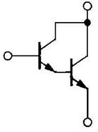 Рис. 6 · Значительные токи утечки у мощных биполярных транзисторов уменьшают область безопасной работы ключа. Большие токи управления с учетом снижения коэффициента усиления повышает мощность потерь в цепях управления биполярными приборами. Высокое входное сопротивление полевых транзисторов и малый динамический заряд управления значительно снижают эту мощность. · Отсутствие накопленного заряда неосновных носителей обеспечивает высокую скорость переключения полевых транзисторов и лучшие динамические характеристики по сравнению с биполярными аналогами. · Однородный полупроводник обладает положительным температурным коэффициентом сопротивления. Таким образом, полевой транзистор обладает теплоустойчивостью и способностью к самовыравниванию плотностей протекающего тока. В биполярных структурах в противоположность этому присутствует эффект локального перегрева. Таким образом, полевые транзисторы менее подвержены резким изменениям токовой нагрузки, что особенно ценно в многоканальных структурах. На практике все оказалось не так просто. · Напряжение насыщения высоковольтных биполярных транзисторов много меньше, чем полевых. Высокое сопротивление канала протекания тока, увеличивающегося с ростом пробивных напряжений, ограничили область использования полевых транзисторов устройствами высокочастотного применения и низковольтными (менее 100 В) схемами. · Из-за высокого температурного коэффициента сопротивление открытого канала практически удваивается при температуре кристалла близкой к 150°С. Эта температура и оказалась критической для применения полевых транзисторов, тогда как биполярные приборы имели аналогичную температуру равную 200°С. Разность в 50°С, плюс снижение порогового напряжения с повышением температуры ограничили применение мощных полевых транзисторов при температуре окружающей среды близкой к 100°С. Полученные результаты побудили разработчиков скомбинировать полезные свойства полевых и биполярных структур. Задача заключалась в получении высоковольтного прибора с высоким входным сопротивлением и низким остаточным напряжением при сохранении высоких динамических показателей. Первые разработки были связаны с попытками приблизить характеристики биполярного ключа к полевому по схеме сдвоенного эмиттерного повторителя Дарлингтона (рис.7). В этой схеме коэффициент усиления равнялся произведению коэффициентов передачи составных транзисторов, и относительно большое входное сопротивление. Время выключения, составлявшее несколько мкс, на порядок и более уступало полевым транзисторам. Напряжение насыщения транзисторной сборки значительно увеличивалось с одновременным ростом потребляемой мощности. В 1978 году была разработана схема составного транзистора (рис.8), где в качестве управляющего ключа использовался мощный МДП-транзистор. Прибор, (побистор), сочетал свойства полевого и биполярного ключа, при незначительной мощности в цепи управления обеспечивал переключение тока в несколько десятков ампер при скорости переключения 200-400 нс. Аналогичные ключи использовались для управления приводом электродвигателей. Недостатки схемы связаны с низким коэффициентом усиления биполярного транзистора (для высоковольтных структур не более 10).