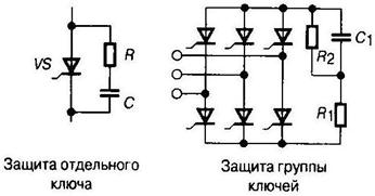 В схемах преобразователей силовой электроники полупроводниковые ключи в наибольшей степени чувствительны к перегрузкам по току и напряжению [3,5,6]. По этой причине, а также с учетом того, что силовые ключи являются наиболее дорогими компонентами схемы, основное внимание при разработке методов защиты уделяется именно этим приборам. Мероприятия по обеспечению защиты схемы и ее элементов сводятся к двум основным направлениям: к устранению причин и источников электрической перегрузки и методам борьбы с естественными перегрузками. Поэтому вначале необходимо установить причины появления перегрузок по напряжению и току, а также оценить их амплитуду и мощность. Основными видами перегрузок по напряжению являются: 1. Перегрузки под действием из питающей сети. 2. Перегрузки, связанные с процессами коммутации в схеме преобразователя и обусловленные конечными временными параметрами переключения силовых ключей. 3. Перегрузки, связанные с характером нагрузки. Перегрузки по напряжению, указанные в первой группе, определяются качеством питающей сети. Поскольку данные перенапряжения опасны и для всех остальных потребителей, для борьбы с ними используют внешние, по отношению к конкретной схеме, защитные устройства, включаемые параллельно входу преобразователя, как это показано на рис. 3.1. Указанные во второй группе перегрузки по напряжению связаны с эффектами накопления и рассасывания зарядов в ключевых компонентах схемы, а также с влиянием паразитных элементов монтажа и корпусов приборов. Данные перегрузки ограничивают применением дополнительных защитных цепочек или снабберов (Snubber circuit), включаемых параллельно ключу или группе приборов (рис. 3.2).