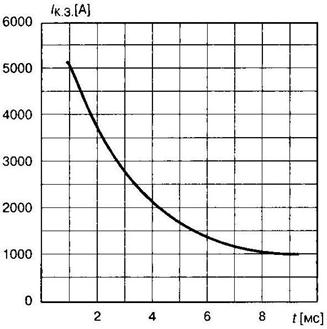 В режимах электрической перегрузки по току и напряжению не должны превышаться параметры, определяющие границы области безопасной работы (см. главу 3). Кроме этого, при коротких замыканиях в схеме следует учитывать так называемые перегрузочные характеристики ключа, определяющие предельно допустимые токи короткого замыкания при разной длительности воздействия перегрузки (рис. 3.5). Отключение импульсов управления в режимах токовой перегрузки не всегда обеспечивает восстановление запирающей способности ключа, особенно в тиристорных приборах. А некоторые типы GTO вообще запрещается выключать обычными методами при токовых перегрузках. В этом случае используют плавкие предохранители, а также согласованные с перегрузочной характеристикой ключа магнитные и биметаллические выключатели, обеспечивающие обесточивание силовой цепи в течение интервала времени менее 10 мс. В качестве предельного параметра ключа в данном случае используют приводимый в справочной информации защитный показатель (l2t). Значение защитного показателя предохранителя должно быть меньше интеграла предельного тока ключа в режиме перегрузки, каковым и является параметр (l2t).