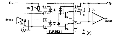 Как правило, по данному проводнику передается информационный сигнал на светоизлучающий диод входного развязывающего оптрона. Несмотря на потенциальную развязку цепей, между проводниками действует емкостная паразитная связь, которая проявляется как напряжение между линией передачи и шиной заземления драйверов (рис. 3.14). Паразитную емкостную связь можно уменьшить следующими способами: близкое расположение пары сигнальных проводников, что достигается их скручиванием; возможно большее их удаление от силовых шин — источников помех; экранирование сигнальных проводников. Экран должен быть изолирован от проводящей линии и заземлен лишь с одной стороны, чтобы исключить протекание токов паразитной обратной связи. Заземление экрана проводят на конце линии передачи, связанной со светоизлучателем, поскольку данная точка соответствует наибольшей паразитной емкости проводника по отношению к силовой шине. Так как паразитная наводка действует синфазно на оба сигнальных проводника, используют также дифференциальное усиление входного сигнала. При этом, однако, требуется работа выходных усилителей оптронов в активном режиме. Варианты ослабления емкостной связи показаны на рис. 3.15.