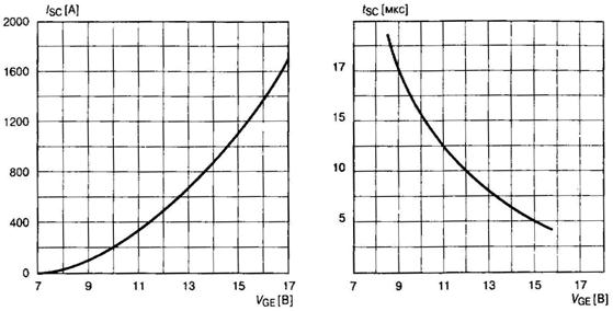 Рис. 3.37 В нормальном режиме работы данный диод находится в открытом состоянии, а его катод через открытый ключ соединяется с общей шиной драйвера управления. В режиме перегрузки по току выходное напряжение силового ключа увеличивается, что приводит к запиранию контролирующего диода. При этом на выходе компаратора появляется импульс, который через логическую схему «И» поступает на вход элемента памяти (триггера). После переброски выходного уровня триггера соответствующие информационные сигналы поступают в схему драйвера для отключения импульсов управления и в дополнительные каналы для индикации режима перегрузки, а также в таймерную систему, обеспечивающую через определенный промежуток времени переустановку всех элементов системы в исходное состояние. Снятие импульсов управления в течение допустимого промежутка времени, определяемого аварийной ОБР, является одним из простейших способов защиты ключей. При этом следует учитывать тот факт, что в ключах транзисторного типа происходит прерывание силового тока повышенной амплитуды, что может сопровождаться серьезным перенапряжением, как в выходной, так и во входной цепи прибора. И следует учитывать все те рекомендации, какие были приведены в предыдущих разделах по пассивным схемам защиты. В ключах тиристорного типа выключение из аварийного режима производят не по цепи управления, а с помощью дополнительных устройств отключения силового тока. Для современных силовых ключей, управляемых по цепи изолированного затвора, используются также методы регулируемого выхода из режима токовой перегрузки. Данные методы основаны на зависимости амплитуды токовой перегрузки и длительности возможного пребывания в режиме короткого замыкания от управляющего напряжения (рис. 3.38). Анализ представленных зависимостей показывает, что уменьшение управляющего напряжения со стандартного уровня 15 В до 8... 10 В позволяет эффективно уменьшать аварийный ток в несколько раз при двух-трех-кратном расширении допустимого времени перегрузки. На рис. 3.39 показана осциллограмма изменения формы аварийного тока ключа при увеличении длительности интервала перегрузки. Как видно, выключение во втором случае происходит с меньшей амплитуды силового тока, что уменьшает всплеск перенапряжений.