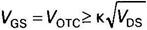 где VОТС — напряжение отсечки на проходной ВАХ нормально открытого транзистора (рис. 4.18). Если напряжение VDS< Vогр, где Vогр — напряжение ограничения, при котором ОПЗ достигает максимальных границ, отсечка определяется уравнением: